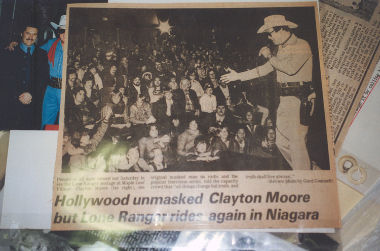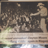 - en-CA Photograph of an article in the Niagara Falls Review about the Lone Ranger Clayton Moore visiting Niagara Falls