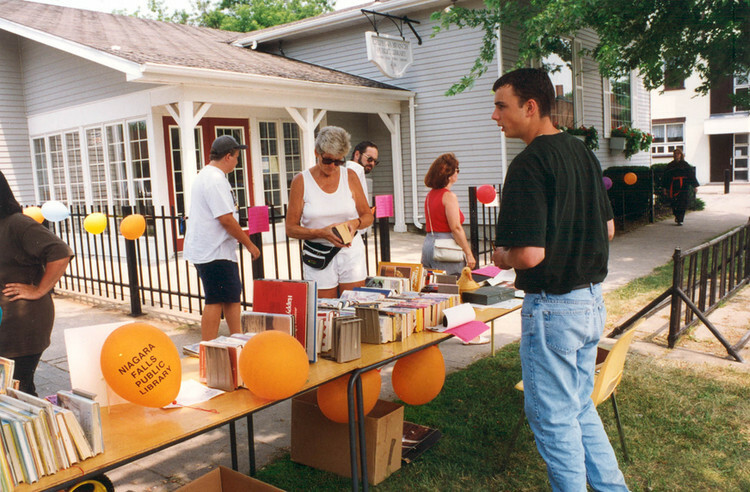 - en-CA Book sale outside of the Chippawa Library during Summerfest