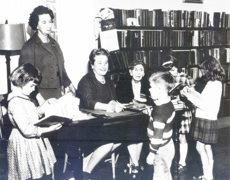 - en-CA Interior of the I.O.D.E. library on Lamonte Dr. in Chippawa. It was torn down in 1967. In the photograph the adults are Mrs. Brounlie, Mrs. Rutherford and Mrs. Bond, all members of the I.O.D.E.