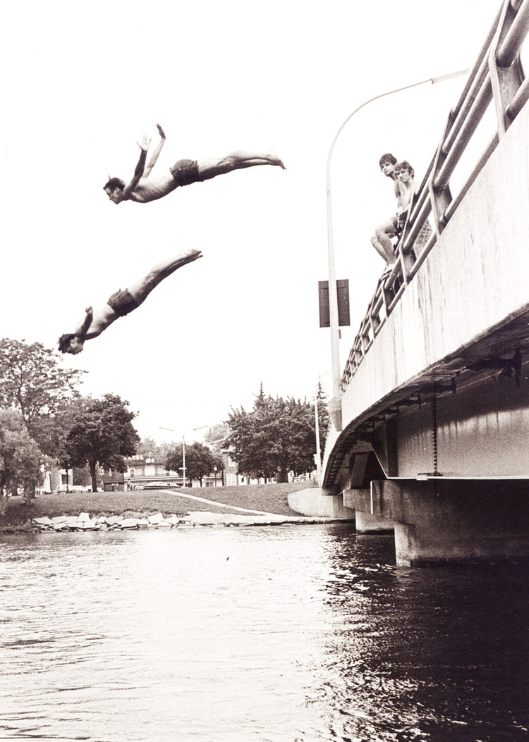 - en-CA Teenagers diving off the Weightman bridge in Chippawa into the Welland River