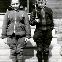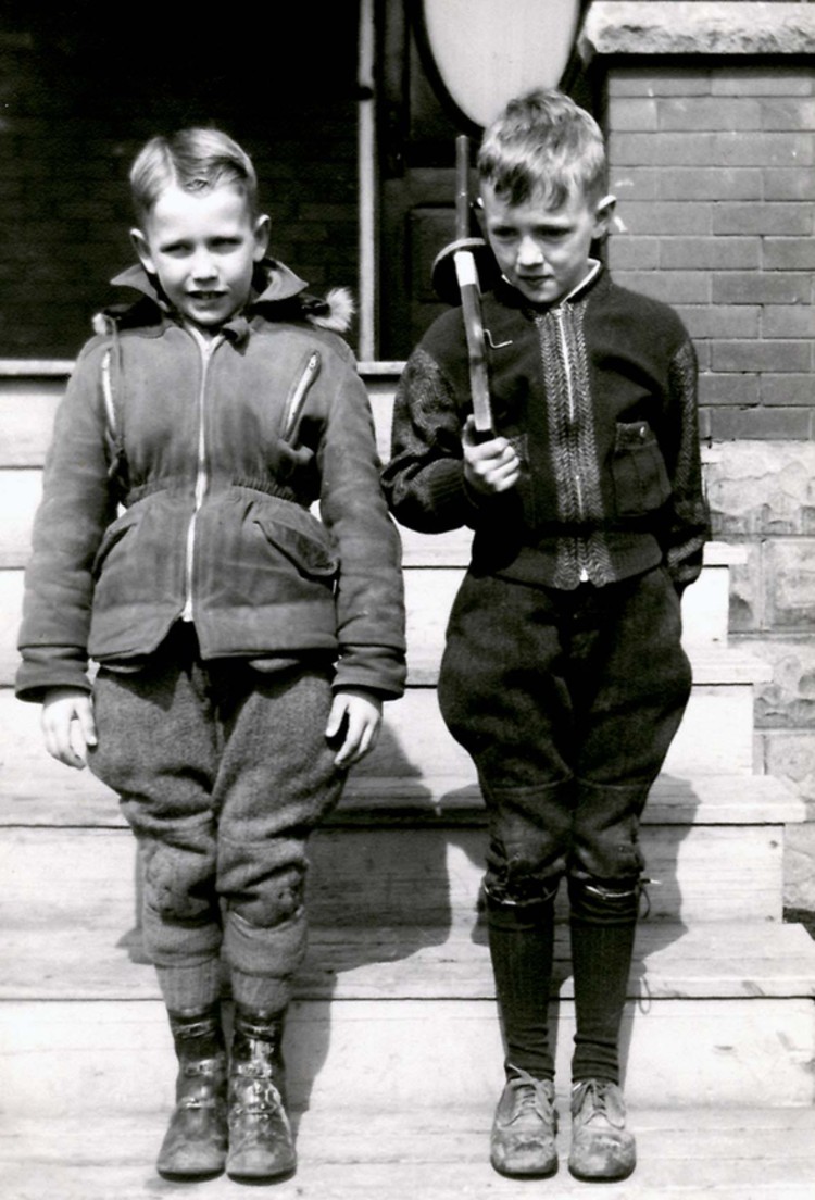- Two Young Boys pose on the steps.