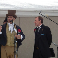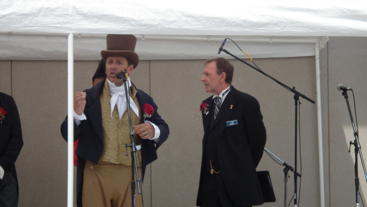 - en-CA Mayor of Niagara Falls, Jim Diodati gives a speech to the crowd. Gord West in background.