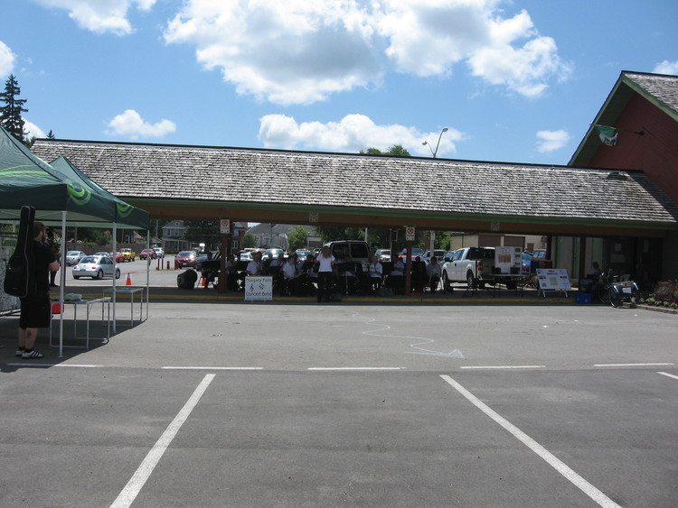 - en-CA The band plays at Sylvia Place behind the history museum.