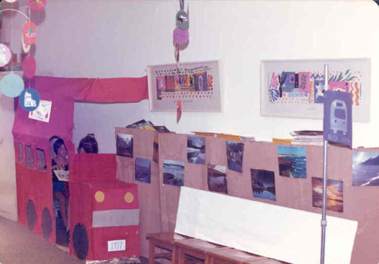 - en-CA A young girl gets a story read to her in the Little Red Reading Bus.
