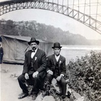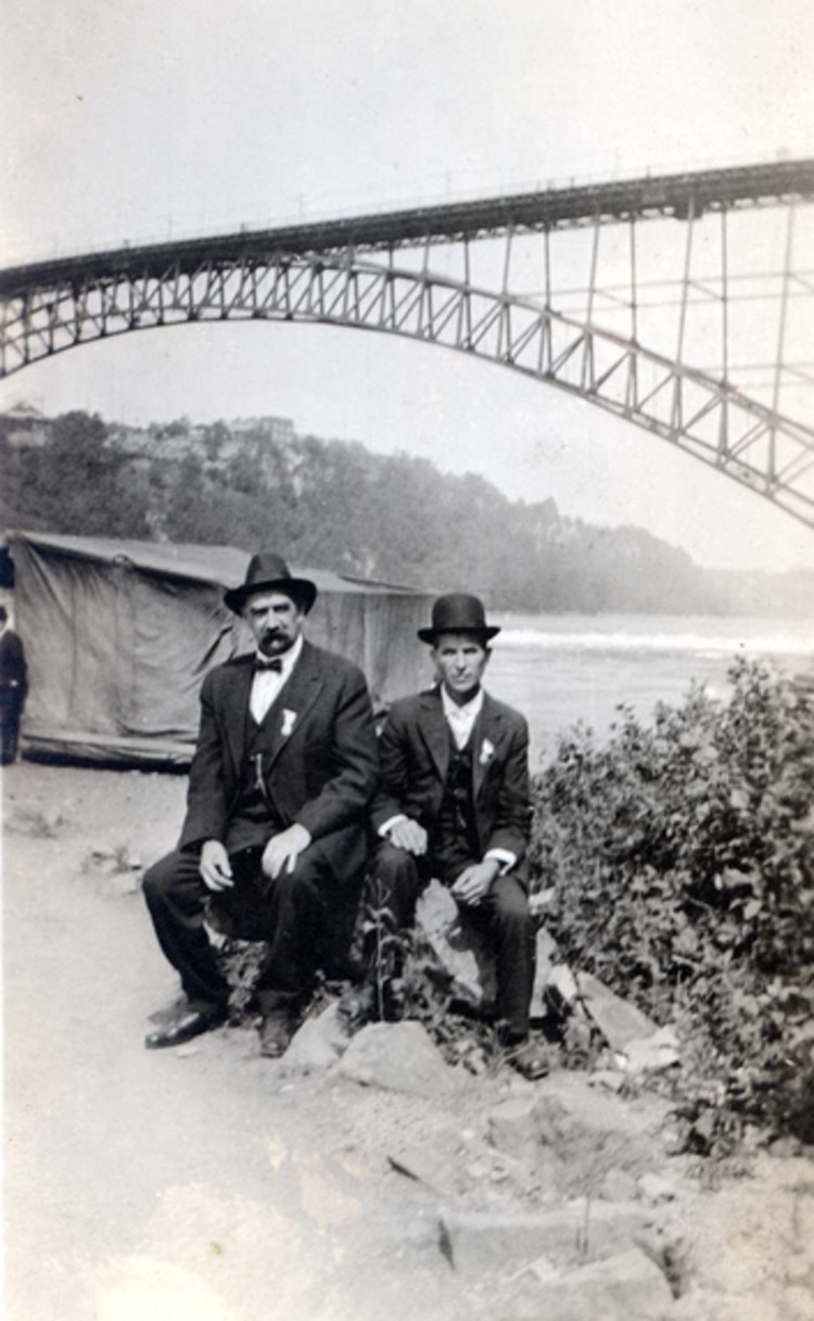 - en-CA Two gentlemen in suits sitting under the Lower Arch bridge