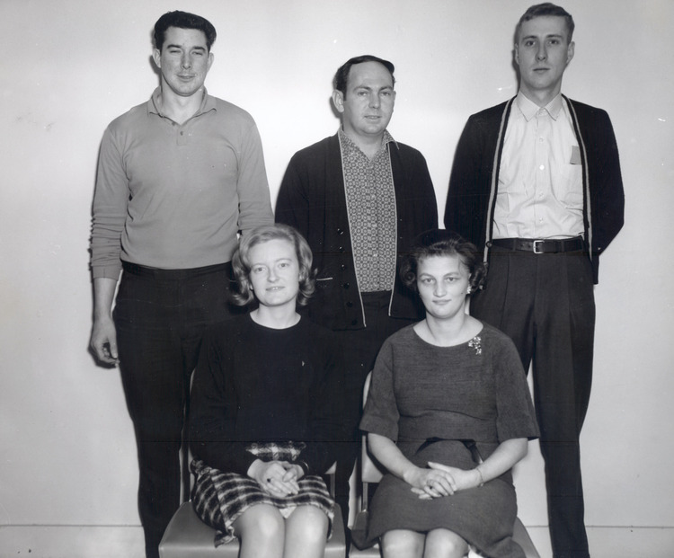 - en-CA From left to right Back: Nelson Hare, Les Comeau, John Front: Lynn, Ann Lasson