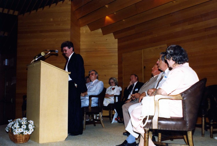 - en-CA At the Niagara Falls Public Library on Victoria Ave. L-R: unknown at podium, Carm Dix, unknown, unknown, George Seibel, Vince Kerrio Sr., Olive Seibel