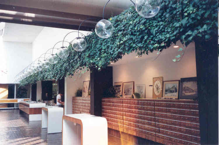 - en-CA Showcasing the lights in the foyer at the Niagara Falls Public Library.