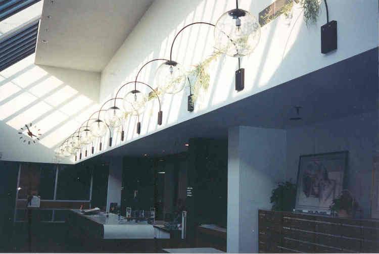 - en-CA Showcasing the lights in the foyer at the Niagara Falls Public Library with different vegetation.