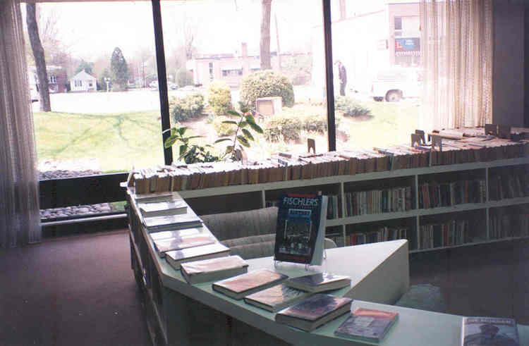 - en-CA Seating area near the front of the library facing out towards Victoria Avenue.