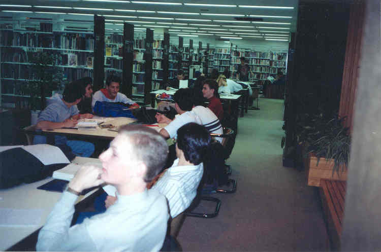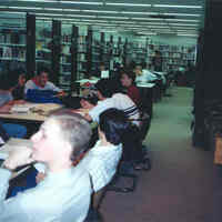 - Teens in non-fiction area of the library. (4)