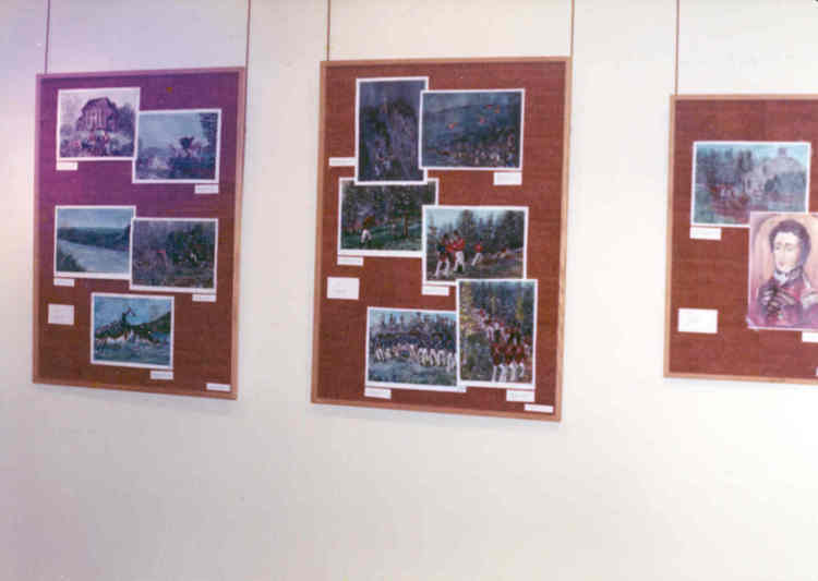 - en-CA Niagara Falls Public Library - Victoria Branch Interior. Rosberg Room with art on display. Watercolours depicting the War of 1812 are on display.