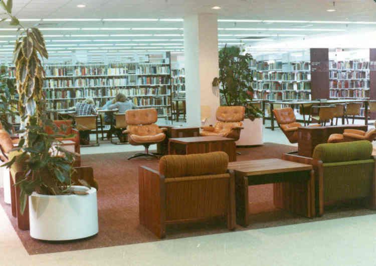 - en-CA Niagara Falls Public Library - Victoria Branch Interior. Seating area in non-fiction section.