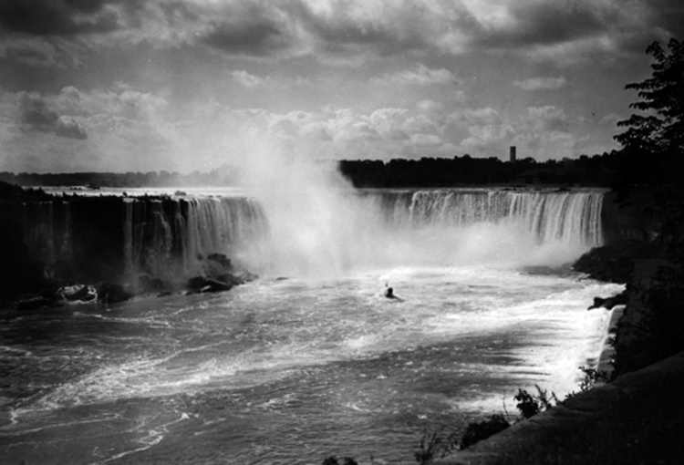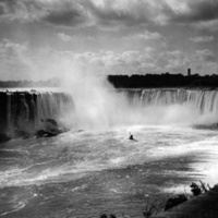 - en-CA A view of the Horseshoe Falls taken from the Canadian side of the gorge. The Maid of the Mist is seen near the base of the falls.