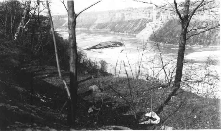 - en-CA Taken from the Canadian side of the gorge a piece of the Falls View Bridge floats downstream before it will eventually sinks to the bottom.