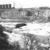 - en-CA Once the ice began to melt in 1938 a piece of the collapsed bridge floated downstream. The Schoelkopf Power Plant is seen behind the wreckage.