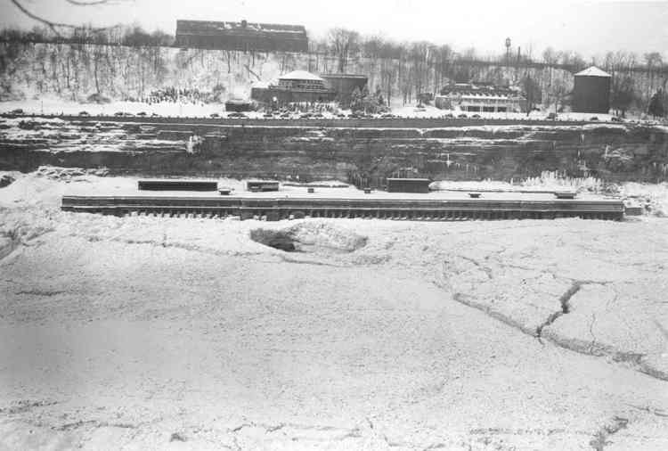 - en-CA The Niagara River has formed an ice bridge which has enveloped the generating station. Above the gorge is the Canadian side and atop the escarpment can be seen the large Ontario Power Co. Transformer building which is now the site of the Fallsview Casino.