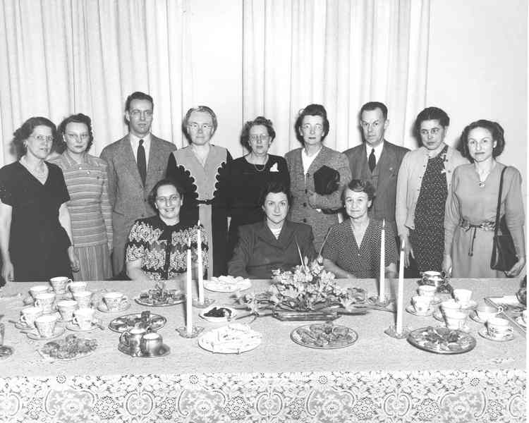 - en-CA Course for grad E librarians. Course instructor: Alberta Letts. Standing at left is Ruby Wallace and three from left is Jade Snell, County Librarian.