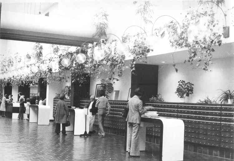 - en-CA Victoria Avenue Library. The old card catalogue and circulation desk (far left).
