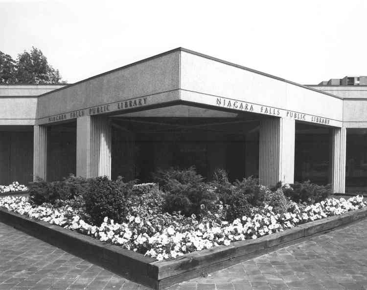 - en-CA Front entrance of the Niagara Falls Public Library which looks out onto Victoria Avenue.