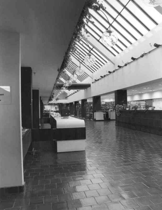 - en-CA The Niagara Falls Public Library on Victoria Avenue. Looking down the main hallway of the library with the circulation desk straight ahead.