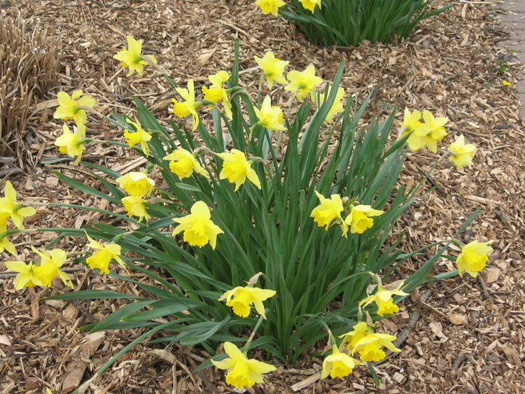 - en-CA Spring daffodils along the sidewalk at the old Canadian Pacific Corridor
