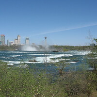- en-CA Upper Niagara River above the brink of the Horseshoe Falls. Skyline in the background : Radisson Hotel, Marriott Hotel, Konica Minolta Tower, Embassy Suites Hotel, Hilton Hotel, Niagara Fallsview Casino Resort