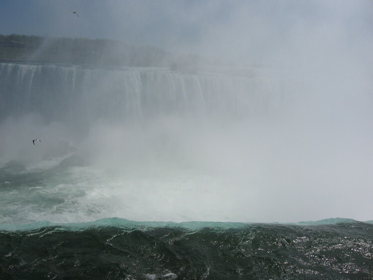 en-CA Gulls flying in the mist at the brink of the Horsehoe Falls