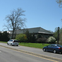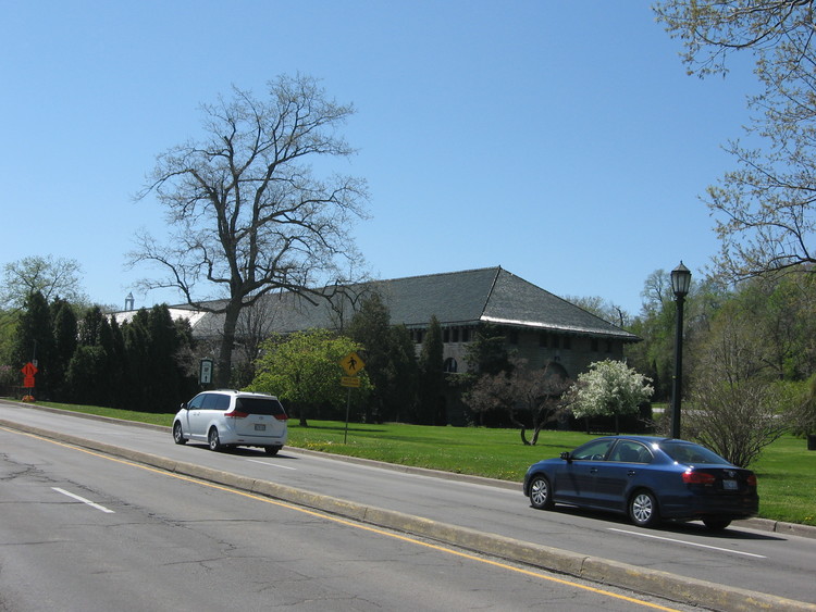 en-CA Canadian Niagara Powerhouse in the spring with flowering trees around it.