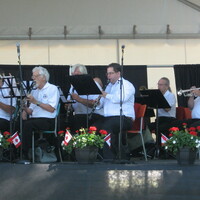- en-CA The concert band playing on stage at Canada Day celebrations at Optimist Park.