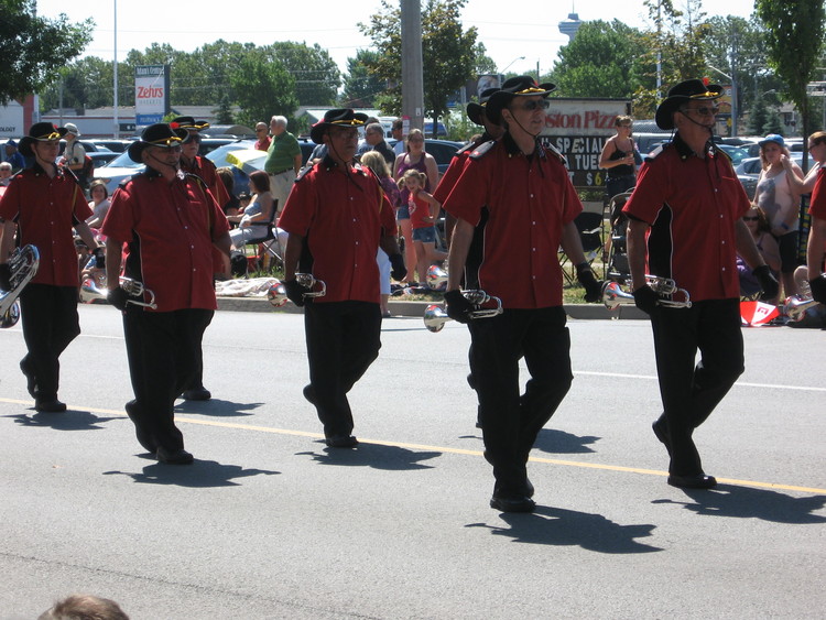 en-CA Trumpeters with Memorial Militaires Alumni of the Niagara Region in Canada Day parade on Morrison Street near Optimist Park