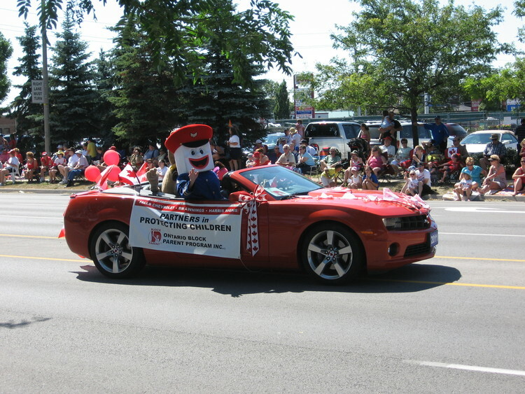 - en-CA Ontario Block Parent Program Mascot in the Canada Day parade on Morrison Street near Optimist Park