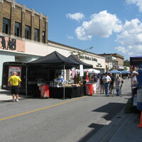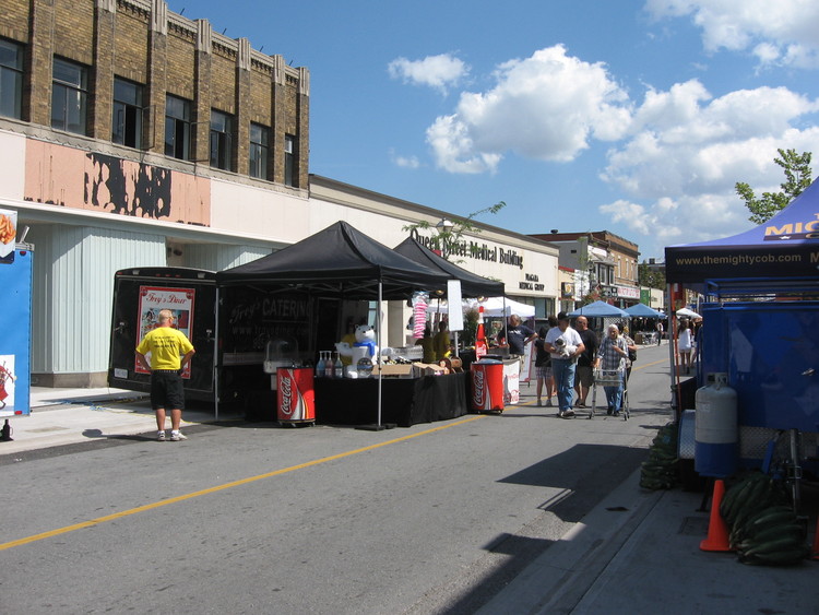 - en-CA Queen Street vendors including the Mighty Cob. The Queen Street Medical Building is visible in the background.