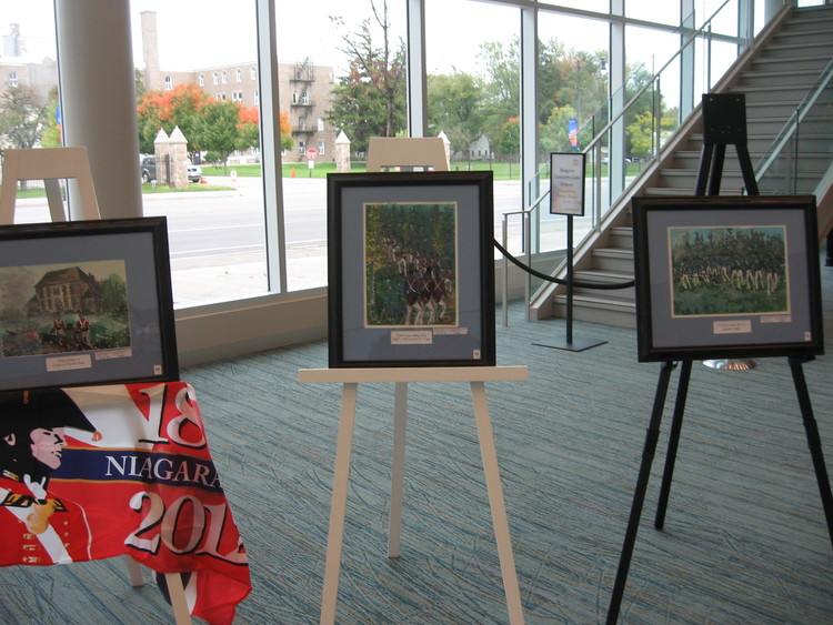 - en-CA War of 1812 art displays (1812 Commemorative Fund) by the Niagara Falls Public Library at the Scotiabank Convention Centre for the Niagara Concerts' War of 1812 Celebration Concert. Mount Carmel is visible in the background.