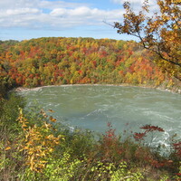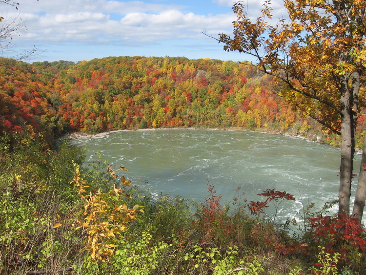 en-CA Fall colours at the whirlpool rapids taken from the sidewalk at the Spanish Aero Car building.