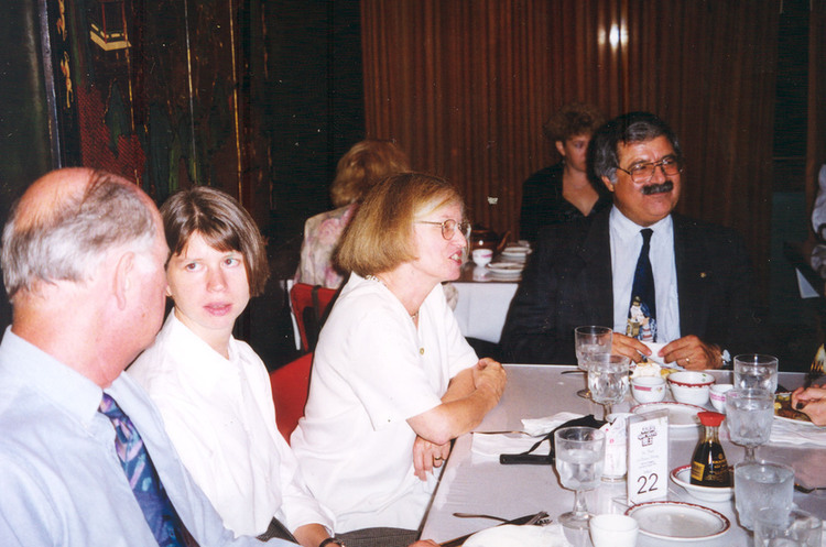 - en-CA Claire Beckermann's retirement party at Jade Garden Restaurant. Claire Beckermann with her family Karen and Michael and Joe Longo at far end of table.