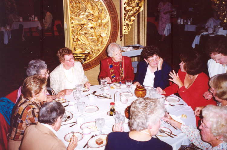 - en-CA Claire Beckermann's retirement party at Jade Garden. Left to right: Millie Wilson, Kay Smith, Jean and Winnie Balby, Margaret Gillespie, Betty Bean, Inge Saczkowski, Liilian Furnivale, and Marjorie Flett.