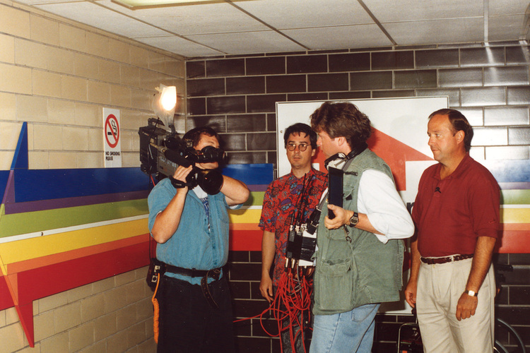 - en-CA Film crew at the Greater Niagara General Hospital filming a television special on Roger Woodward.