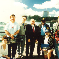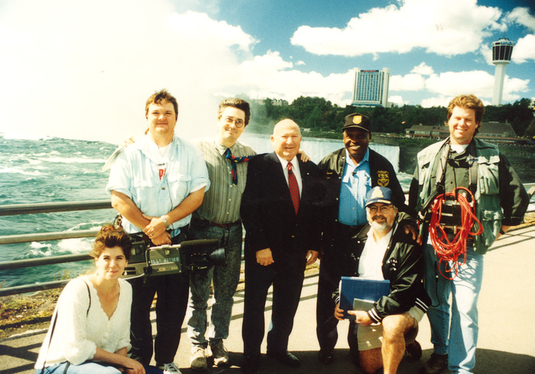 - en-CA John Quattrochi and John Haynes standing at the spot on Terrapin Point from which they helped rescue Deanne Woodward from going over the Horseshoe falls on July 9, 1960. They are with crew members from the documentary being filmed "Miracle @ Niagara - the Roger and Deanne Woodward Story"