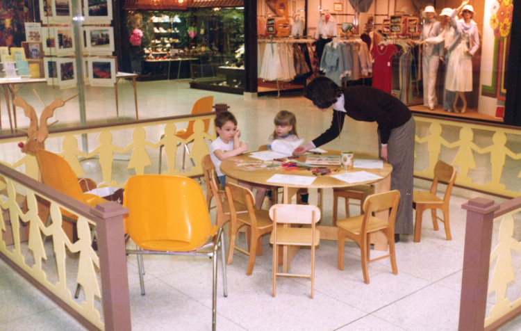 en-CA Inside card: The Library reaches out: a quiet moment at the Library's display for The Week of the Young Child, at Niagara Square, April, 1978.