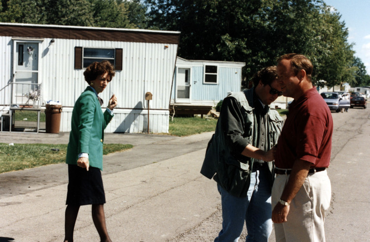 - en-CA Crew members filming Roger and Deanne Woodward at the Lynch Park-on-the-River for the documentary "Miracle @ Niagara - the Roger and Deanne Woodward Story." This is the trailer camp at which James Honeycutt lived and from which they started their journey.