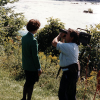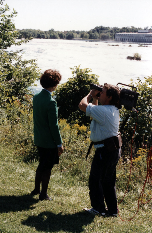 - en-CA Crew members filming Deanne Woodward along the Upper Niagara River on the American side for the documentary "Miracle @ Niagara - the Roger and Deanne Woodward Story." This is the trailer camp at which James Honeycutt lived and from which they started their journey.