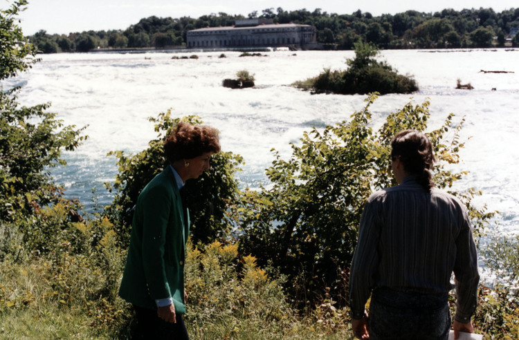 - en-CA Crew members filming Deanne Woodward along the Upper Niagara River on the American side for the documentary "Miracle @ Niagara - the Roger and Deanne Woodward Story." This is the trailer camp at which James Honeycutt lived and from which they started their journey.
