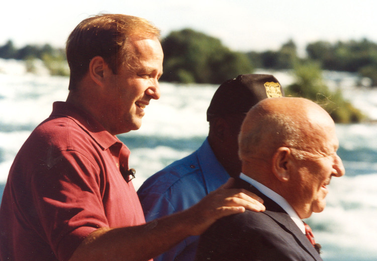 - en-CA John Quattrochi, John Haynes and Roger Woodward by Terrapin Point. They are being filmed for the documentary "Miracle @ Niagara: the Roger and Deanne Woodward story."