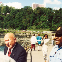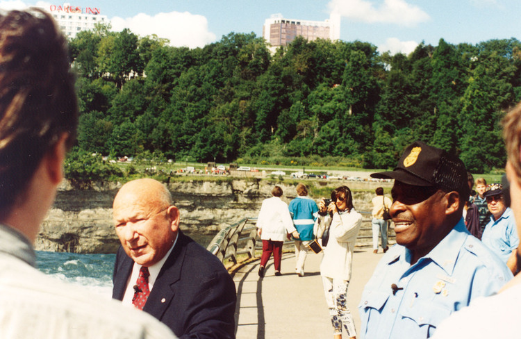 - en-CA John Haynes and John Quattrochi standing near the spot on Terrapin Point from which they helped rescue Deanne Woodward from going over the Horseshoe Falls on July 9, 1960 .
