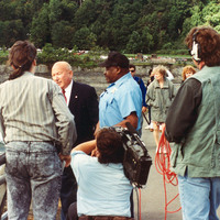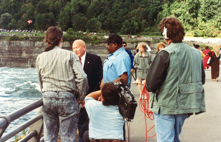 - en-CA John Haynes and John Quattrochi standing near the spot on Terrapin Point from which they helped rescue Deanne Woodward from going over the Horseshoe Falls on July 9, 1960 .