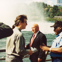 - en-CA John Haynes and John Quattrochi standing near the spot on Terrapin Point from which they helped rescue Deanne Woodward from going over the Horseshoe Falls on July 9, 1960 .