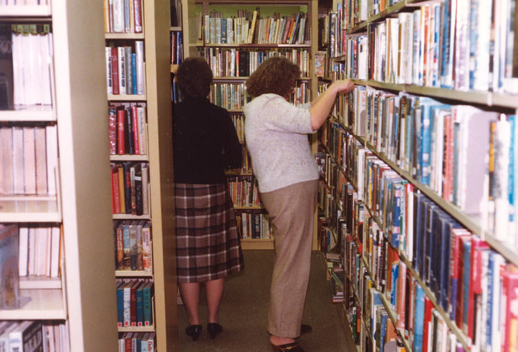 - en-CA Shelving books in the adult department of the Stamford Centre Library