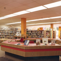 - en-CA The children's department of the new public library at 4848 Victoria Avenue featuring the circulation desk.
