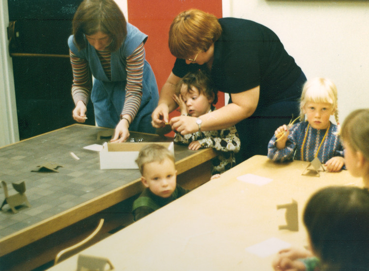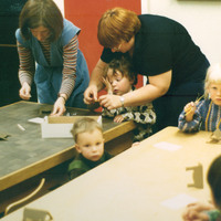 - en-CA Children being helped with a craft by library staff, Claire Beckerman, on the left and Betty Ann Gregolski